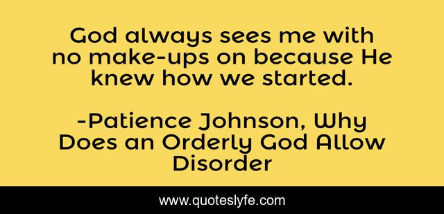 "Patience Johnson, Why Does an Orderly God Allow Disorder Quotes." Quoteslyfe.com, 2025. Fri. 05 Dec. 2025. <https://www.quoteslyfe.com/quote/God-always-sees-me-with-no-make-20576>.