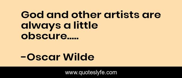 This page presents the quote "God and other artists are always a little obscure.....". Author of this quote is Oscar Wilde. This quote is about art, quote-of-all-times,.