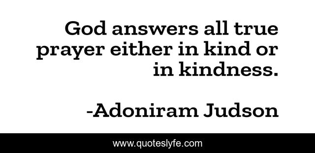 This page presents the quote "God answers all true prayer either in kind or in kindness.". Author of this quote is Adoniram Judson. .