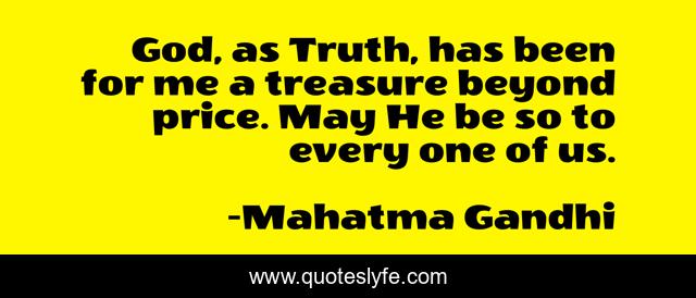 This page presents the quote "God, as Truth, has been for me a treasure beyond price. May He be so to every one of us.". Author of this quote is Mahatma Gandhi. This quote is about me, treasure, truth,.