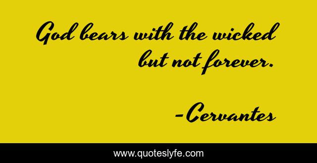 This page presents the quote "God bears with the wicked but not forever.". Author of this quote is Cervantes. This quote is about cruelty, wickedness,.