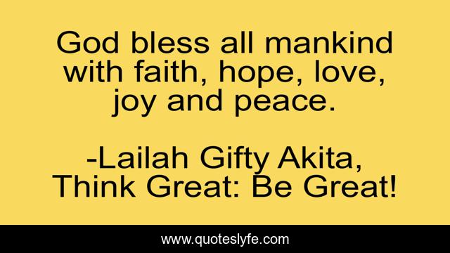 "Lailah Gifty Akita, Think Great: Be Great! Quotes." Quoteslyfe.com, 2025. Tue. 09 Dec. 2025. <https://www.quoteslyfe.com/quote/God-bless-all-mankind-with-faith-hope-84299>.