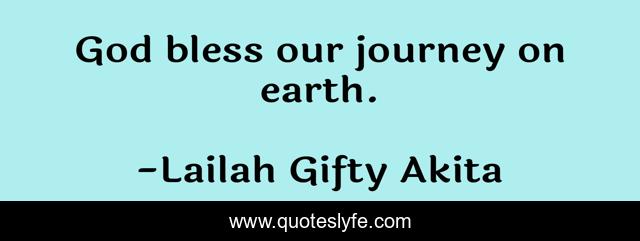 This page presents the quote "God bless our journey on earth.". Author of this quote is Lailah Gifty Akita. This quote is about bless, journey-to-yourself, journeys, journey, blessing, blessed, journey-in-life, blessings-in-disguise, journey-of-life,.
