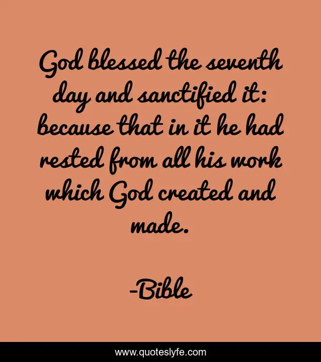 This page presents the quote "God blessed the seventh day and sanctified it: because that in it he had rested from all his work which God created and made.". Author of this quote is Bible. .