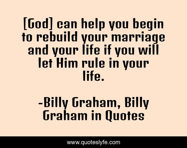 This page presents the quote "[God] can help you begin to rebuild your marriage and your life if you will let Him rule in your life.". Author of this quote is Billy Graham, Billy Graham in Quotes. This quote is about marriage, billy-graham,.