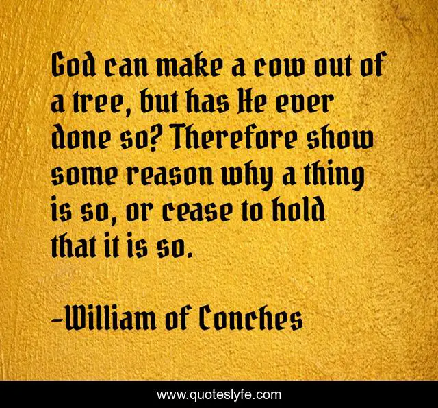 "William of Conches Quotes." Quoteslyfe.com, 2025. Sun. 07 Dec. 2025. <https://www.quoteslyfe.com/quote/God-can-make-a-cow-out-of-8895>.