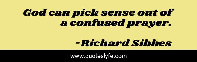 This page presents the quote "God can pick sense out of a confused prayer.". Author of this quote is Richard Sibbes. This quote is about god, confused, prayer,.