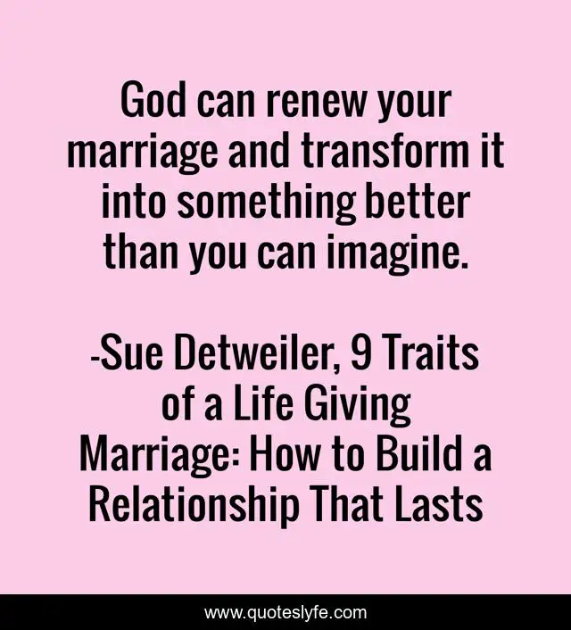 "Sue Detweiler, 9 Traits of a Life Giving Marriage: How to Build a Relationship That Lasts Quotes." Quoteslyfe.com, 2025. Fri. 05 Dec. 2025. <https://www.quoteslyfe.com/quote/God-can-renew-your-marriage-and-transform-77341>.