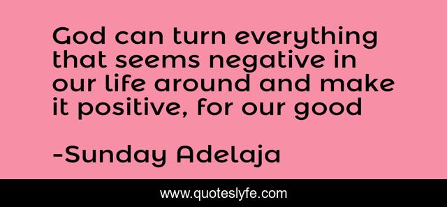 This page presents the quote "God can turn everything that seems negative in our life around and make it positive, for our good". Author of this quote is Sunday Adelaja. This quote is about life, good, god, confidence, negative, turn, positive,.