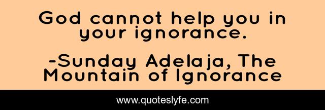 This page presents the quote "God cannot help you in your ignorance.". Author of this quote is Sunday Adelaja, The Mountain of Ignorance. This quote is about mountain, life, darkness, power, danger, god, people, ignorance, light,.