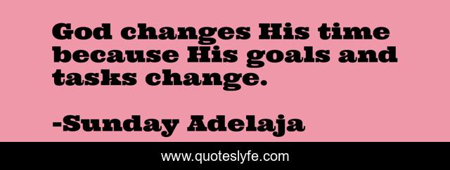 This page presents the quote "God changes His time because His goals and tasks change.". Author of this quote is Sunday Adelaja. This quote is about tasks, changes, goals,.