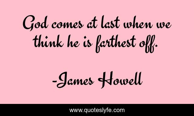 This page presents the quote "God comes at last when we think he is farthest off.". Author of this quote is James Howell. .
