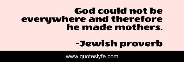 This page presents the quote "God could not be everywhere and therefore he made mothers.". Author of this quote is Jewish proverb. This quote is about fathers, mothers,.