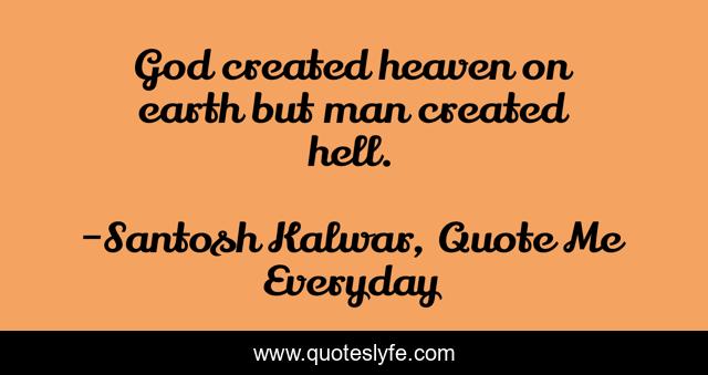 This page presents the quote "God created heaven on earth but man created hell.". Author of this quote is Santosh Kalwar, Quote Me Everyday. This quote is about earth, heaven, god, hell,.