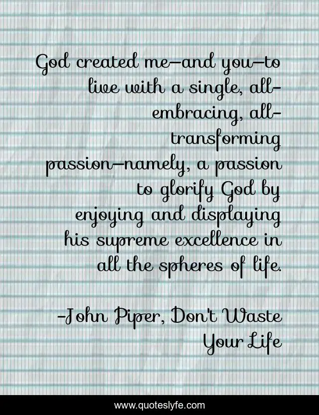 "John Piper, Don't Waste Your Life Quotes." Quoteslyfe.com, 2025. Fri. 05 Dec. 2025. <https://www.quoteslyfe.com/quote/God-created-me-and-you-to-live-11256>.