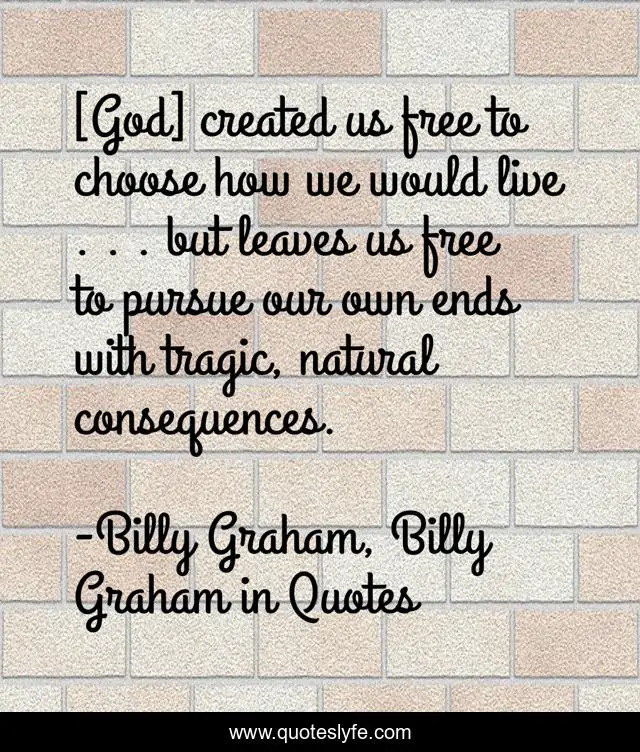 "Billy Graham, Billy Graham in Quotes Quotes." Quoteslyfe.com, 2025. Sat. 06 Dec. 2025. <https://www.quoteslyfe.com/quote/God-created-us-free-to-choose-how-152799>.