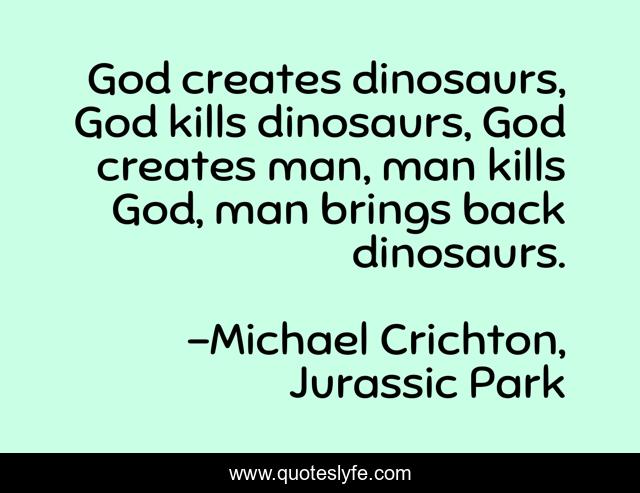 "Michael Crichton, Jurassic Park Quotes." Quoteslyfe.com, 2025. Mon. 08 Dec. 2025. <https://www.quoteslyfe.com/quote/God-creates-dinosaurs-God-kills-dinosaurs-God-41722>.