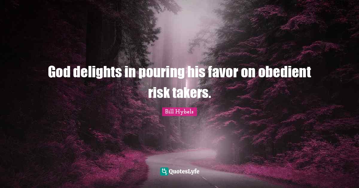 This page presents the quote "God delights in pouring his favor on obedient risk takers.". Author of this quote is Bill Hybels. This quote is about pouring, delight, obedient, risk, god,.
