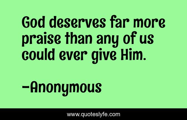"Anonymous Quotes." Quoteslyfe.com, 2025. Sat. 06 Dec. 2025. <https://www.quoteslyfe.com/quote/God-deserves-far-more-praise-than-any-273908>.