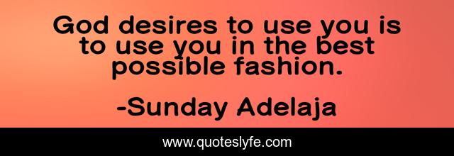This page presents the quote "God desires to use you is to use you in the best possible fashion.". Author of this quote is Sunday Adelaja. This quote is about desire, fashion, possible,.