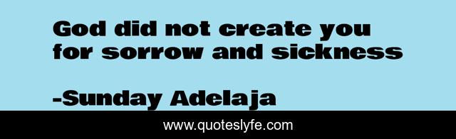 This page presents the quote "God did not create you for sorrow and sickness". Author of this quote is Sunday Adelaja. This quote is about sickness, god, sorrow, calling, purpose, create, fulfillment,.