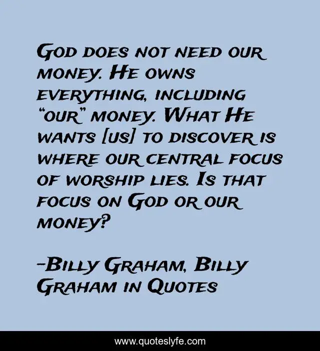 This page presents the quote "God does not need our money. He owns everything, including “our” money. What He wants [us] to discover is where our central focus of worship lies. Is that focus on God or our money?". Author of this quote is Billy Graham, Billy Graham in Quotes. This quote is about money, billy-graham,.