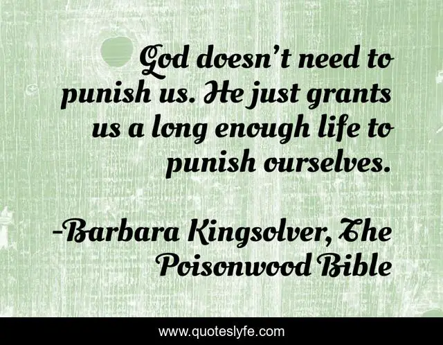 "Barbara Kingsolver, The Poisonwood Bible Quotes." Quoteslyfe.com, 2025. Fri. 05 Dec. 2025. <https://www.quoteslyfe.com/quote/God-doesn-t-need-to-punish-us-29616>.
