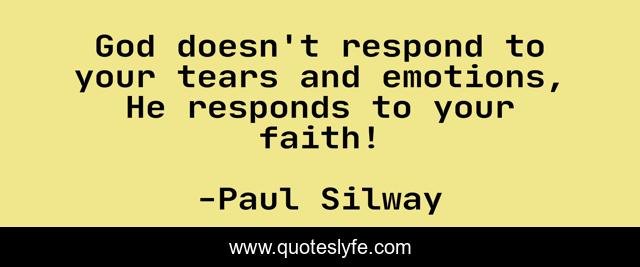 This page presents the quote "God doesn't respond to your tears and emotions, He responds to your faith!". Author of this quote is Paul Silway. .
