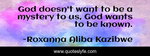 This page presents the quote "God doesn't want to be a mystery to us, God wants to be known.". Author of this quote is Roxanna Aliba Kazibwe. This quote is about inspirational-attitude, christian-living,.