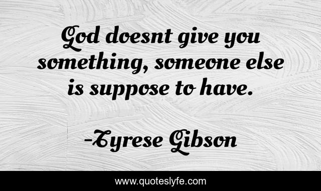 This page presents the quote "God doesnt give you something, someone else is suppose to have.". Author of this quote is Tyrese Gibson. This quote is about peace-of-mind, enthusiasm, life, peace, inspirational,.