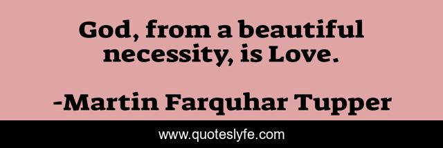 "Martin Farquhar Tupper Quotes." Quoteslyfe.com, 2025. Mon. 08 Dec. 2025. <https://www.quoteslyfe.com/quote/God-from-a-beautiful-necessity-is-Love-306725>.
