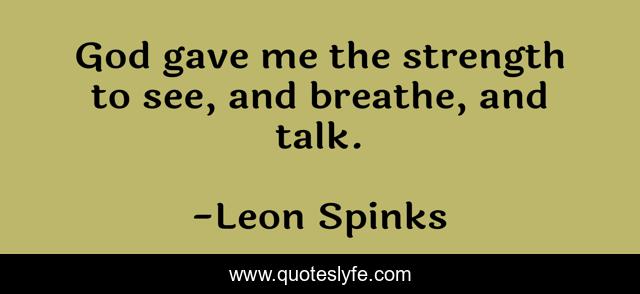 This page presents the quote "God gave me the strength to see, and breathe, and talk.". Author of this quote is Leon Spinks. This quote is about me, god, see,.