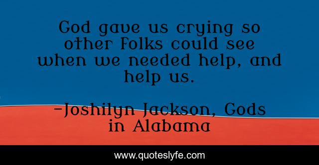 This page presents the quote "God gave us crying so other folks could see when we needed help, and help us.". Author of this quote is Joshilyn Jackson, Gods in Alabama. This quote is about god, cry, help, crying,.