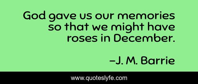 This page presents the quote "God gave us our memories so that we might have roses in December.". Author of this quote is J. M. Barrie. .