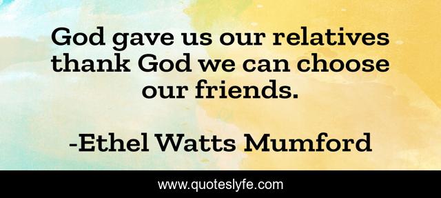 This page presents the quote "God gave us our relatives thank God we can choose our friends.". Author of this quote is Ethel Watts Mumford. This quote is about friends, family,.