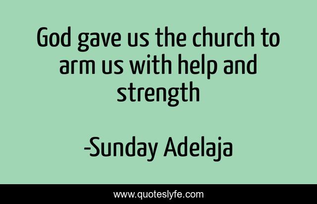 This page presents the quote "God gave us the church to arm us with help and strength". Author of this quote is Sunday Adelaja. This quote is about prosperity, strength, help, success, house, riches, god, planted, money,.