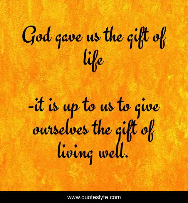 "it is up to us to give ourselves the gift of living well. Quotes." Quoteslyfe.com, 2025. Sat. 06 Dec. 2025. <https://www.quoteslyfe.com/quote/God-gave-us-the-gift-of-life-11056>.