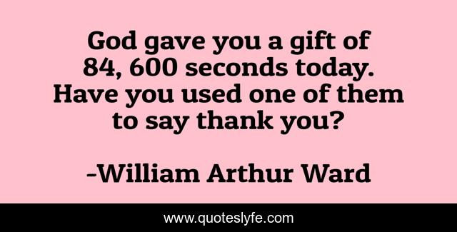 This page presents the quote "God gave you a gift of 84, 600 seconds today. Have you used one of them to say thank you?". Author of this quote is William Arthur Ward. This quote is about gratitude, etiquette, thank-you, character, thankful-heart, manners, blessings,.