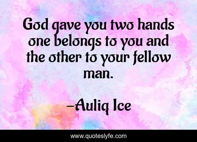 "Auliq Ice Quotes." Quoteslyfe.com, 2025. Mon. 08 Dec. 2025. <https://www.quoteslyfe.com/quote/God-gave-you-two-hands-one-belongs-224403>.