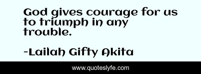This page presents the quote "God gives courage for us to triumph in any trouble.". Author of this quote is Lailah Gifty Akita. This quote is about inspiring, christian, god, troubles, courage, triumph,.