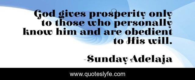 This page presents the quote "God gives prosperity only to those who personally know him and are obedient to His will.". Author of this quote is Sunday Adelaja. .