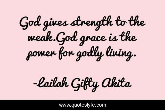 This page presents the quote "God gives strength to the weak.God grace is the power for godly living.". Author of this quote is Lailah Gifty Akita. This quote is about godly-advice, godly-men, spiritual, spiritual-sayings, godly-gratitude, godly-wife, gods-will, godly-person, god-s-grace,.
