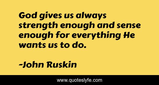 This page presents the quote "God gives us always strength enough and sense enough for everything He wants us to do.". Author of this quote is John Ruskin. .