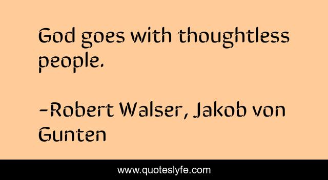 "Robert Walser, Jakob von Gunten Quotes." Quoteslyfe.com, 2025. Sat. 06 Dec. 2025. <https://www.quoteslyfe.com/quote/God-goes-with-thoughtless-people-11665>.