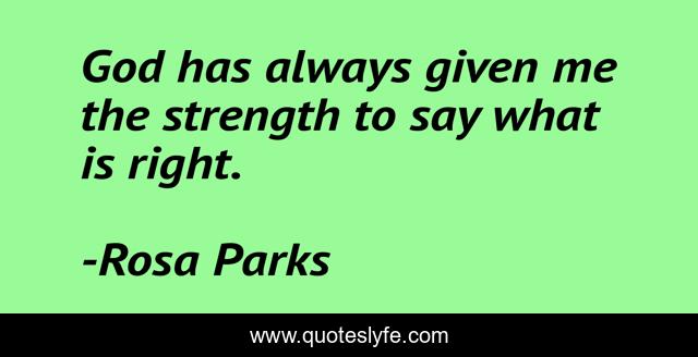 This page presents the quote "God has always given me the strength to say what is right.". Author of this quote is Rosa Parks. This quote is about me, god, right,.