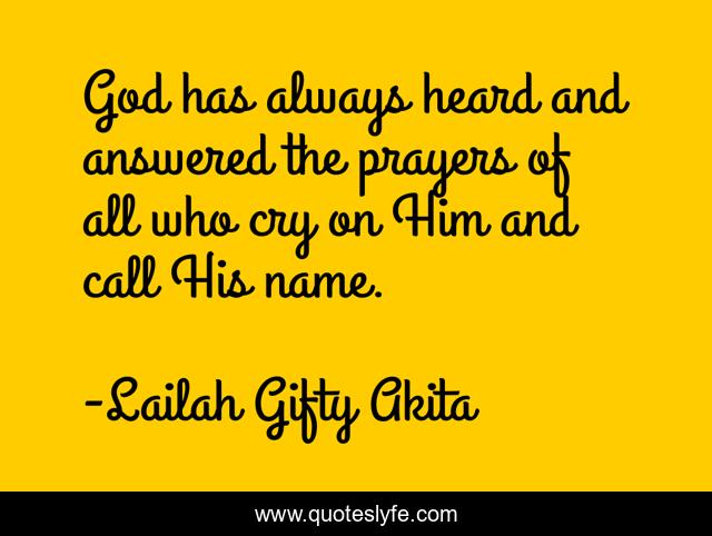 This page presents the quote "God has always heard and answered the prayers of all who cry on Him and call His name.". Author of this quote is Lailah Gifty Akita. This quote is about prayers-answered, god, praying, prayer, prayers,.