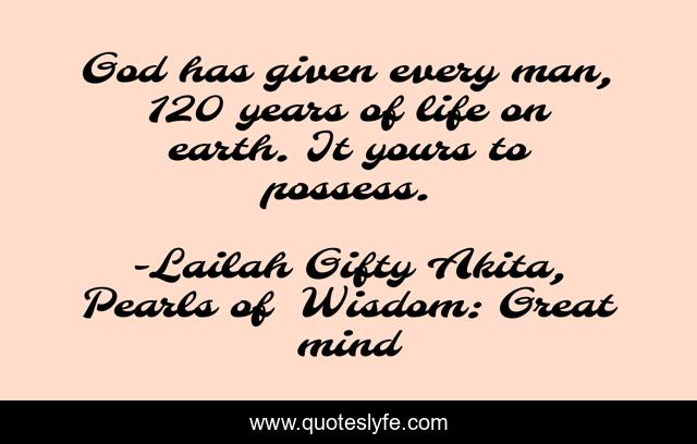 "Lailah Gifty Akita, Pearls of Wisdom: Great mind Quotes." Quoteslyfe.com, 2025. Fri. 05 Dec. 2025. <https://www.quoteslyfe.com/quote/God-has-given-every-man-120-years-85223>.