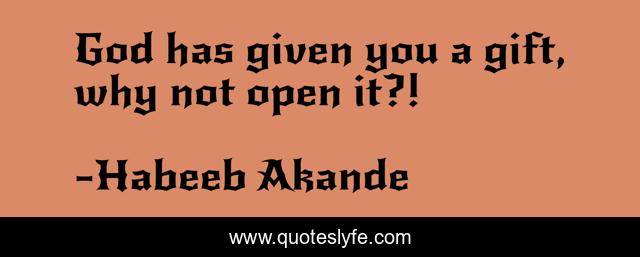 This page presents the quote "God has given you a gift, why not open it?!". Author of this quote is Habeeb Akande. This quote is about god-given-gift, potential,.