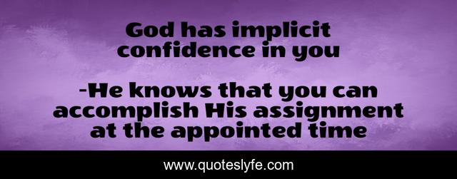 "He knows that you can accomplish His assignment at the appointed time Quotes." Quoteslyfe.com, 2025. Fri. 05 Dec. 2025. <https://www.quoteslyfe.com/quote/God-has-implicit-confidence-in-you-46879>.