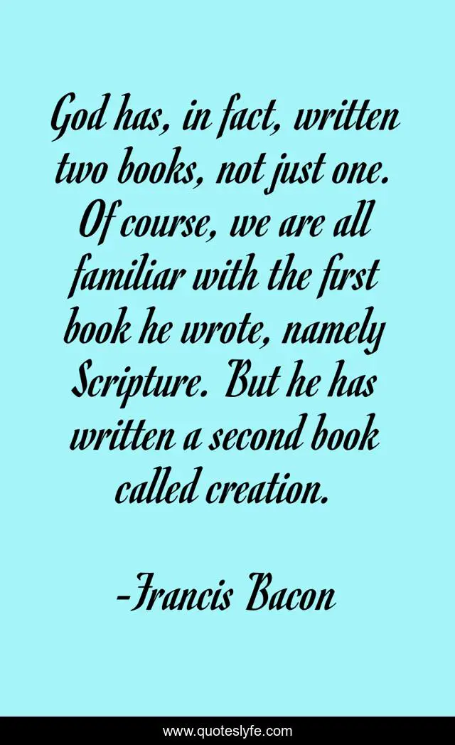 "Francis Bacon Quotes." Quoteslyfe.com, 2025. Sun. 07 Dec. 2025. <https://www.quoteslyfe.com/quote/God-has-in-fact-written-two-books-10853>.